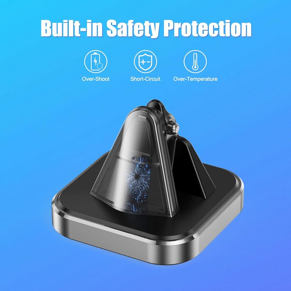قاعدة مرجحة مضادة للانزلاق لتعزيز الثبات مزودة بقاعدة مرجحة غير قابلة للانزلاق تمسك الأسطح بقوة مثل المكاتب أو العدادات أو الطاولات بجانب السرير. يبقى ثابتًا في مكانه حتى عند الاصطدام، مما يضمن بقاء نظارتك آمنة ومستقرة أثناء الشحن.