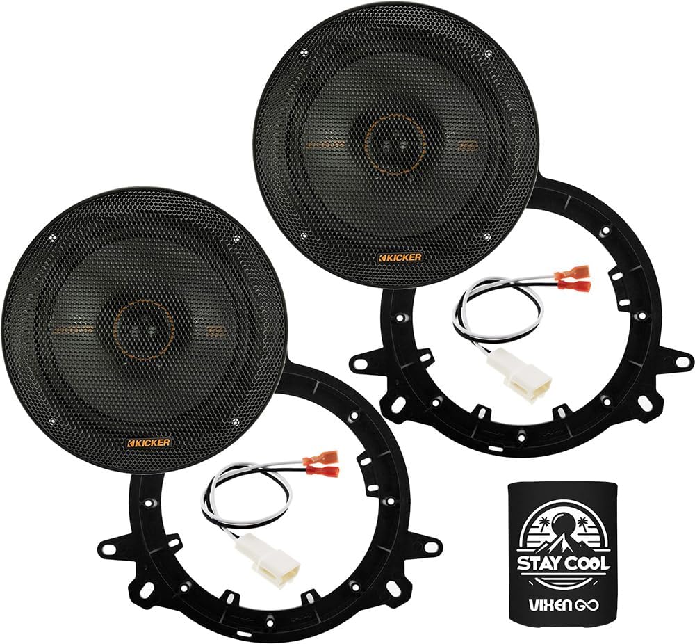 Kicker 51KSC6504 6-½" KS Series Front Door Factory Speaker Replacement Kit with Speaker Harness and Mounting Adapters for Toyota Corolla 2003-2019 Bundle of 3 Items: Kicker 51KSC6504 6-½" KS Series 2-Way Car Speakers (Pair) Vixen Go VGH-72-8104 Speaker Harness (Pair) Vixen Go VGB6503 Speaker Mounting Adapters (Pair) 6-½" 2-Way KS Series Car Speakers (Pair) Peak: 200 watts RMS: 100 watts Impedance: 4 ohms Sensitivity: 90dB Frequency Response: 43-21,000 Hz Polypropylene Woofer Cone Rubber Surround ¾" Silk Dome Tweeter Preferred coaxial upgrade over factory sound Superior bass response and accurate musical reproduction Extended Dynamic Range Thin-Mount Design Easily Fits Behind Factory Grilles Top-mount Depth: 1-13/16" Speaker Harness (Pair) Connects Aftermarket Speakers to the Factory Speaker Harness Quick and Easy Installation No Cutting Needed Plugs Directly Into Vehicle's Speaker Connector Speaker Adapters (Pair) Adapts 6" to 6-¾" Aftermarket Speakers to the Factory Speaker Openings Quick and Easy Installation Durable ABS Construction