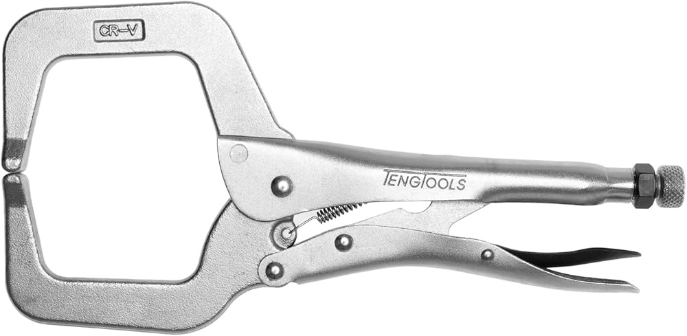 كماشة ذات قبضة قوية مطلية بالنيكل على شكل حرف C. تشتمل الميزات على قفل ذاتي مع رافعة تحرير وصامولة قفل على مقبض التعديل للإعداد المسبق. مصنوعة من الكروم الفاناديوم)