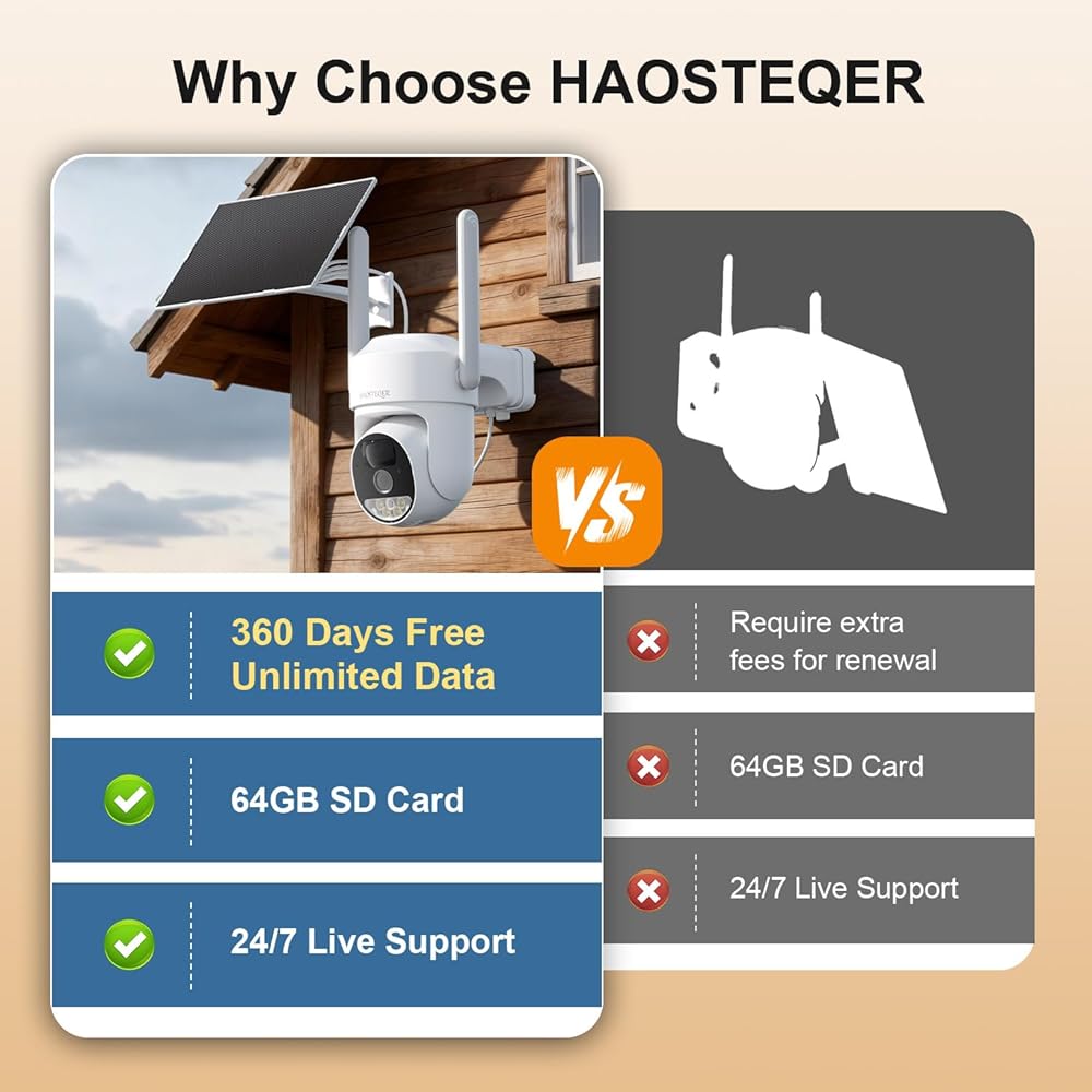 • لا حاجة إلى اشتراك، ولا حاجة إلى شبكة WiFi، واتصال 4G: تشتمل كاميرات 4G التي لا تحتاج إلى اشتراك على بطاقات SIM مع خطة بيانات غير محدودة مجانية لمدة 360 يومًا بدون رسوم إضافية، واتصال 4G، ولا توجد قيود على مسافة WiFi، مصممة للمواقع خارج الشبكة مثل المزارع ومواقع العمل والكبائن والمركبات الترفيهية والحظائر. (واي فاي غير مدعوم.)