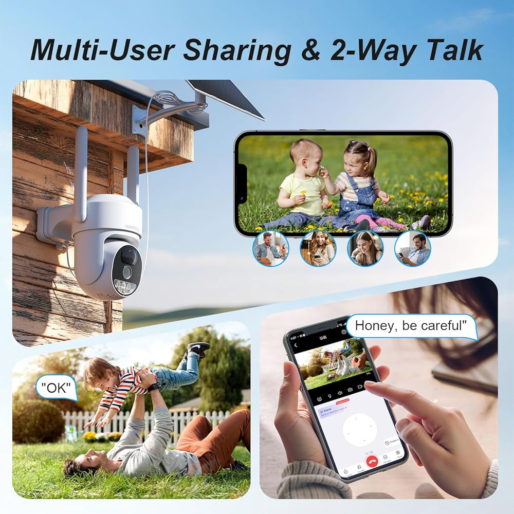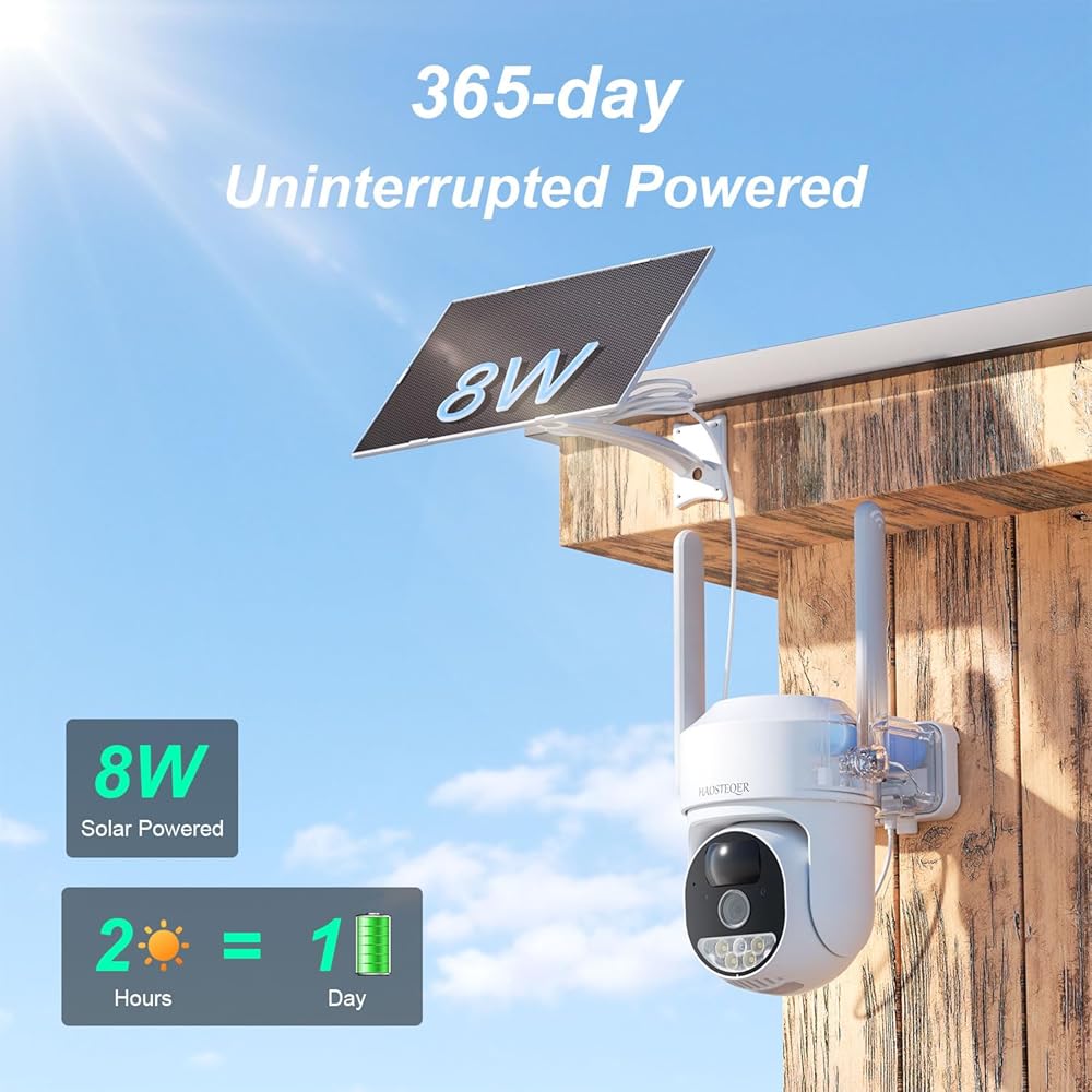 • كاميرا شمسية لاسلكية مع تشغيل لمدة 360 يومًا: توفر لوحة شمسية 8 وات وبطارية قابلة لإعادة الشحن كهرباء قوية، وتدعم تشغيل كاميرا 4G الشمسية الخارجية على مدار الساعة طوال أيام الأسبوع، حتى في الشتاء بدون أشعة الشمس.