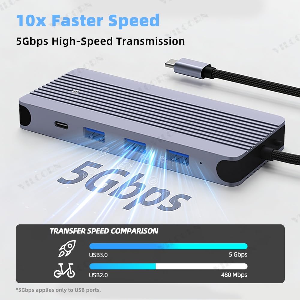 【Blazing-Fast Data Transfer & 4K@60Hz Ultra-High Definition】Experience lightning-fast data transfer speeds of up to 5Gbps with the USB 3.0 ports, ideal for transferring large files in seconds. No longer need to worry about the problem of insufficient USB ports, which can bring great convenience to your life and work. Enjoy crystal-clear visuals with 4K resolution at 60Hz refresh rate perfect for streaming, presentations, or immersive gaming experiences.