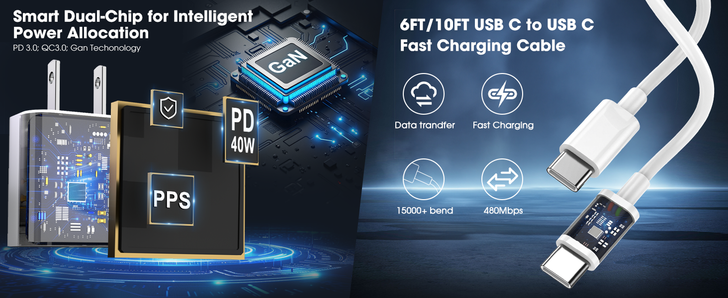 شحن سريع 60 وات مع PD & QC: يدعم شاحن USB-C ثنائي المنفذ بقدرة 60 وات بروتوكولات الشحن السريع (PD) والشحن السريع (QC). يوفر منفذ USB-C ما يصل إلى 40 وات عند شحن جهاز واحد، وهو مثالي لشحن أجهزة iPhone 17/16/15 Pro/Pro Max وiPad Pro وحتى MacBook. يوفر منفذ USB-A 20 واط للأجهزة عند شحن جهاز واحد مثل iPhone 15 أو أجهزة USB-A الأخرى. اشحن أجهزة متعددة في وقت واحد مع توزيع الطاقة بكفاءة، مما يضمن الحد الأدنى من وقت الانتظار. إنها الترقية المثالية من الشاحن القديم الخاص بك، مما يوفر شحنًا أسرع ومزيدًا من الطاقة لأجهزتك.