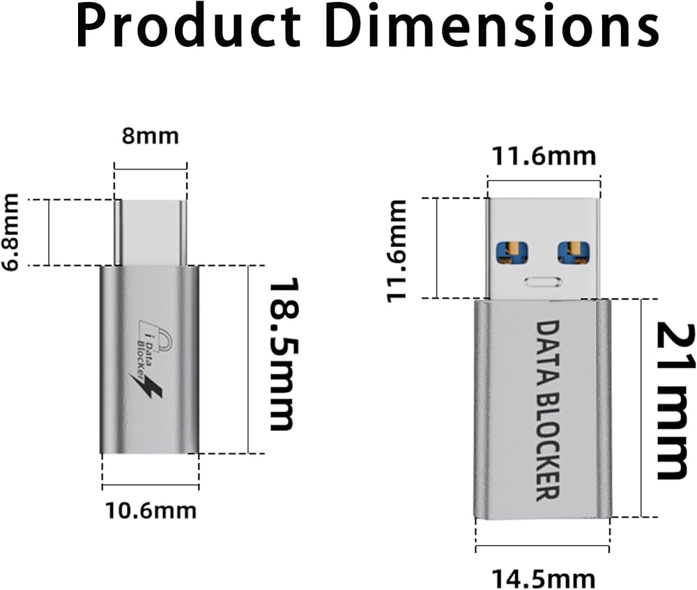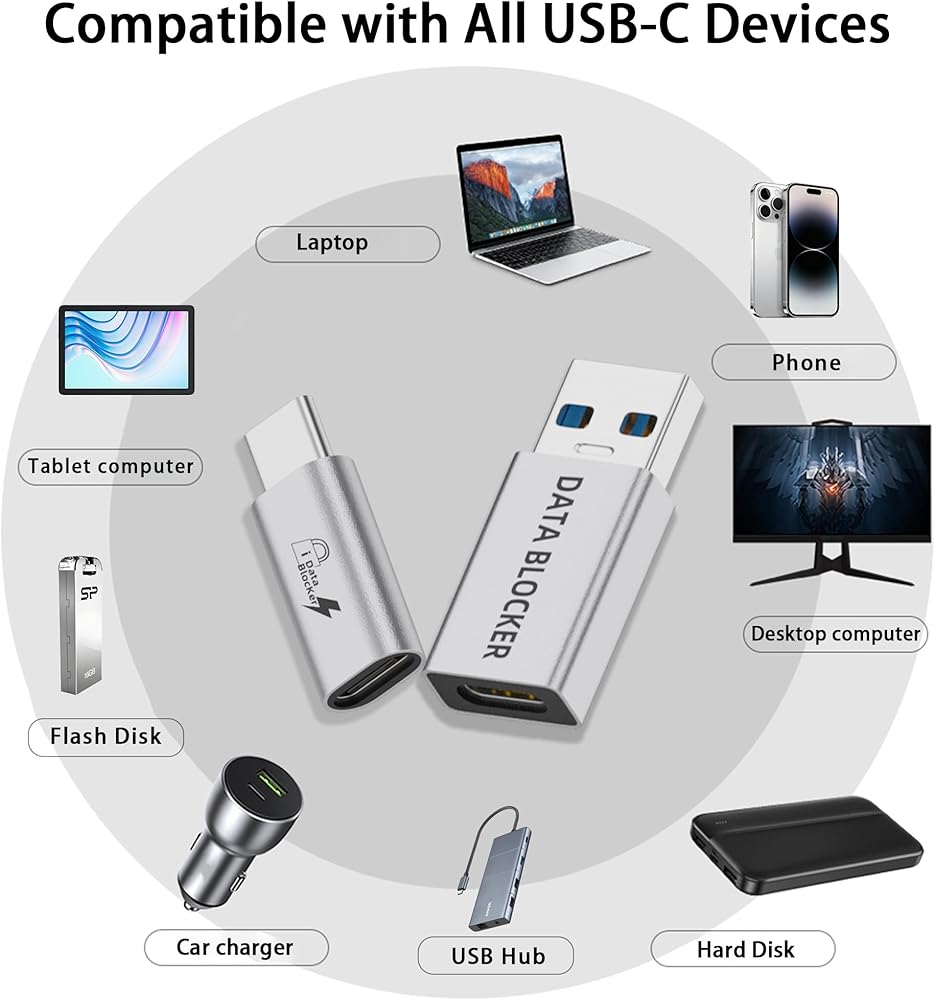 Convenient 2-Pack for Everyday Use: Includes 2 USB data blockers, allowing you to protect multiple devices or keep one at home and one on the go. Compatible with all USB-A and USB-C devices.