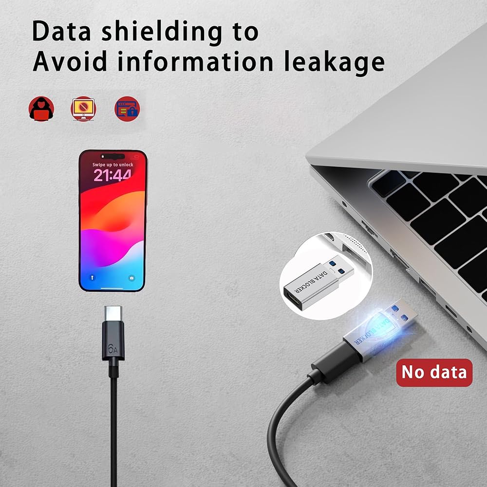 Universal USB Data Blocker – Safe Charging: Compatible with any device with USB-A or USB-C ports. Prevents data transfer while charging, ensuring your devices charge safely in public places, at work, or at home.