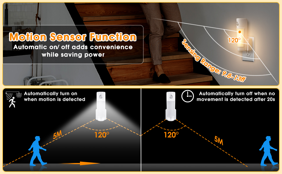 【إضاءة ليلية تعمل بالحركة - لا مزيد من التعثر في الظلام】 في وضع الحركة، يكتشف الضوء الحركة حتى مسافة تصل إلى 13 قدمًا ويتم تشغيلها تلقائيًا. يغلق بعد 20 ثانية بدون حركة. سواء تم استخدامها كعناصر استعداد للإعصار أو مصابيح يدوية للمنزل، فإنها تضمن السلامة والراحة دون رفع إصبع، خاصة في السلالم أو الحمامات أو الممرات في الليل.