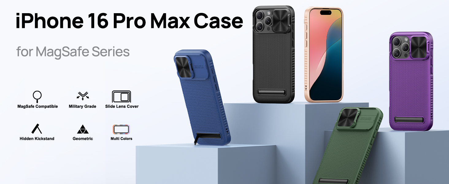 • ✅【حرر يديك! مسند مخفي عملي مدمج: تم تصميم حافظة هاتف iPhone 16 Pro Max في حامل مخفي رفيع وخفيف الوزن ولكنه متين مع عدم إضافة أي حجم كبير، والذي يمكنه حمل هاتفك عموديًا أو أفقيًا كما ترغب في تحرير يديك. سواء كنت تشاهد البرامج التلفزيونية أو تجري محادثات فيديو، فإن حافظة iPhone 16 pro max هذه المزودة بحامل توفر زاوية رؤية مثالية بناءً على الاعتبارات المريحة لضمان راحة المشاهدة المثالية
