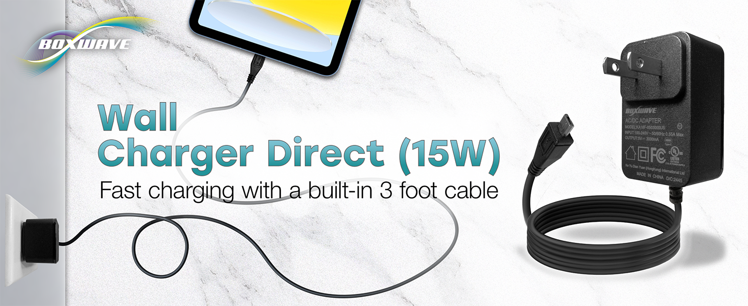 شاحن BoxWave متوافق مع جهاز Acer Iconia Tab 10 A3-A30 - شاحن حائط مباشر (15 وات)، شحن سريع لجهازك باستخدام كابل مدمج بطول 3 أقدام