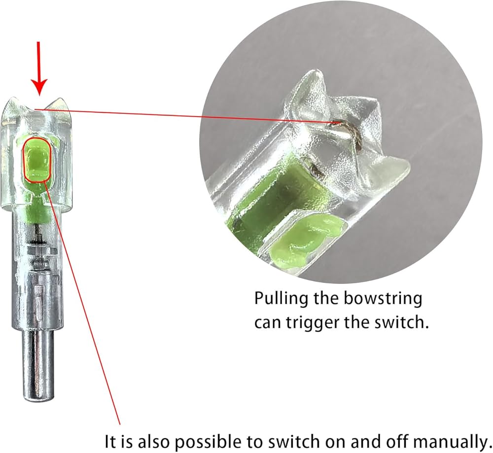【Convenient ON/OFF Functionality】: Designed with a user-friendly, high-quality switch, our lighted arrow nocks allow for simple operation. Effortlessly turn the lights on or off as needed, giving you control and convenience in your archery setup.