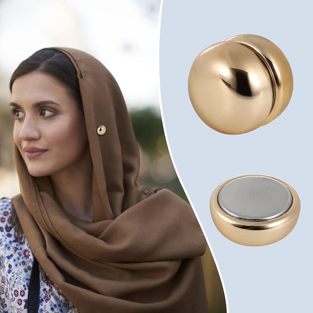 • Premium Material: Made of rare earth permanent magnets and machined galvanized alloy material, the double-sided magnets for hijab are not easy to fade, keeping your scarf securely locked all day. At the same time, the smooth surface is very shiny and looks more elegant and charming.