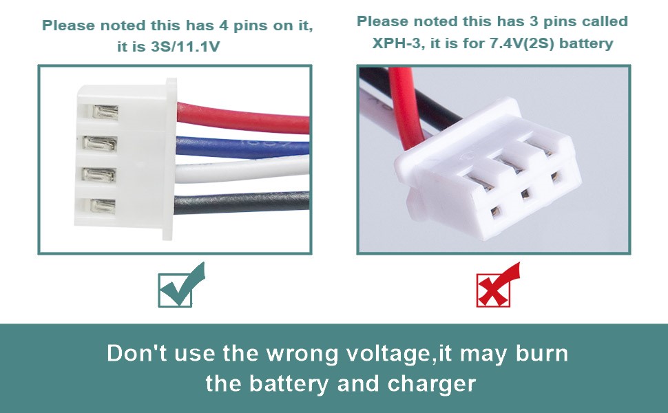 تحذير: هذه البطارية ذات تفريغ عادي 3A، ولا يمكن أن تحل محل بطارية LiPO ذات معدل التفريغ العالي 11.1 فولت 30C، ولا يمكن أن تتوافق مع بنادق Airsoft ذات معدل التفريغ العالي 30C