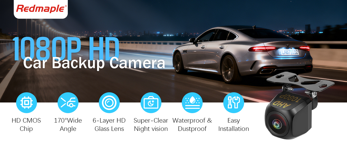 كاميرا احتياطية للسيارة Redmaple، زاوية معدنية واسعة AHD 1080P، مجال رؤية 170 درجة، رؤية ليلية، كاميرا عكسية مقاومة للماء IP69 للسيارة SUV RV مع تركيب على السطح