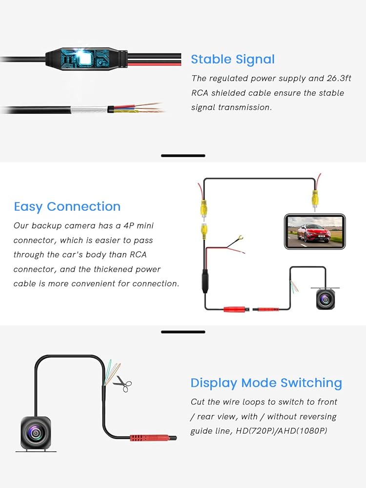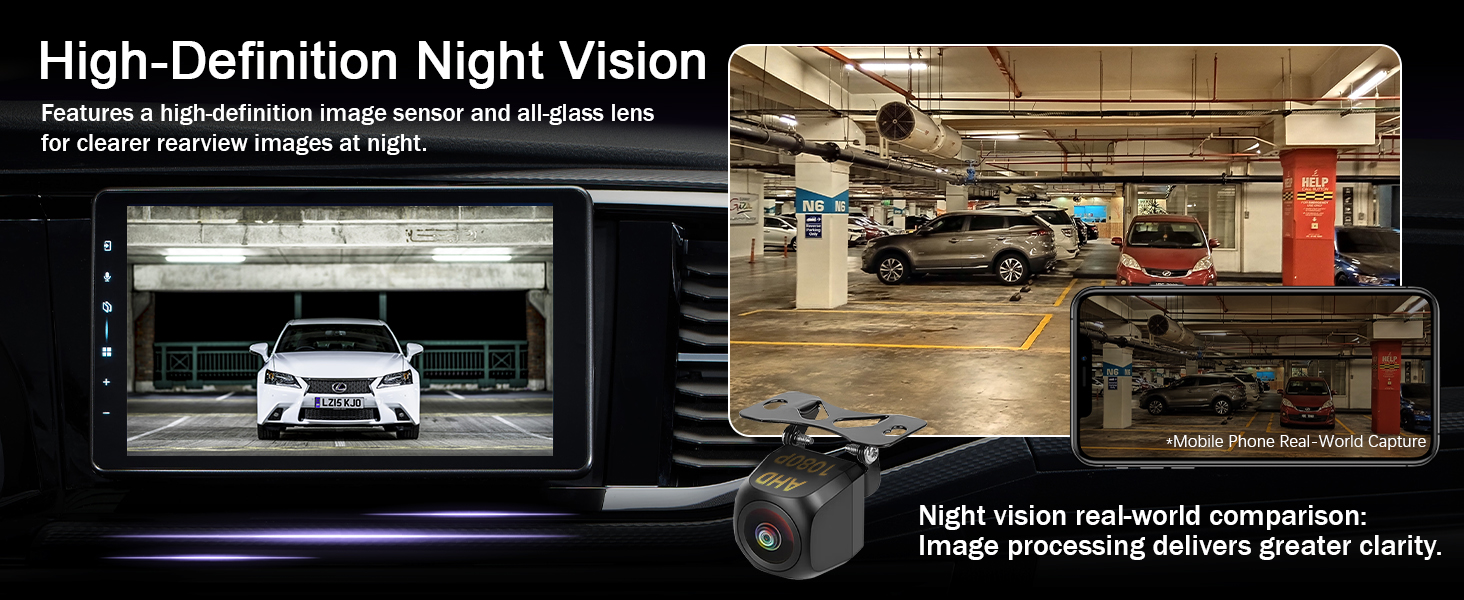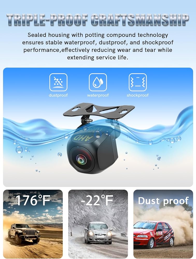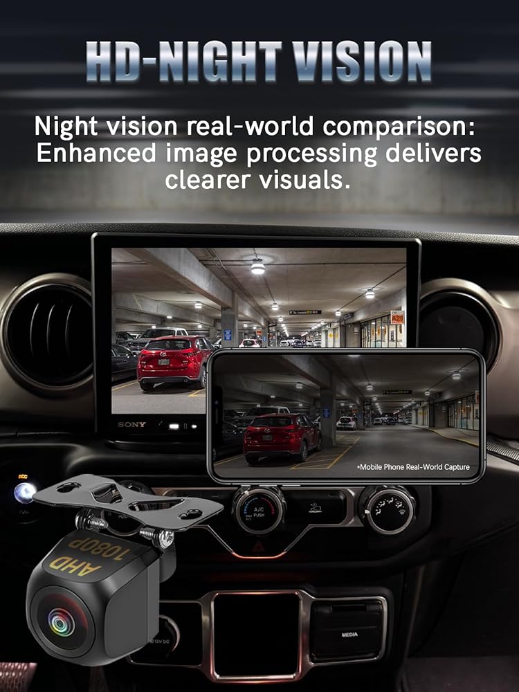 دقة عالية: توفر كاميرا AHD 1080P جودة صورة واضحة للغاية لتعزيز السلامة أثناء عكس سيارتك