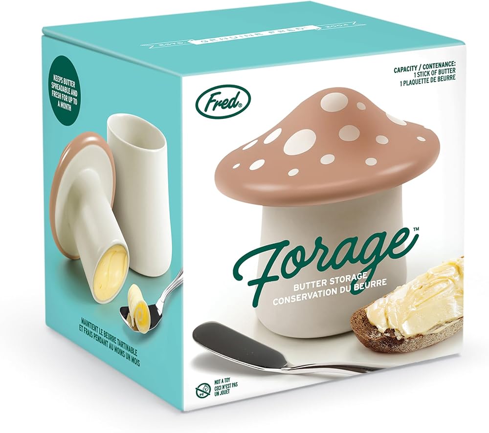 هل تبحث عن زبدة قابلة للدهن بشكل مثالي؟ لا تنظر إلى أبعد من Fred's Forage - الأفضل في تخزين الزبدة. يعمل هذا الفطر الرائع بسحره للحفاظ على الزبدة طرية وطازجة دون تبريد! مصنوعة من السيراميك عالي الجودة الذي يتحمل ما يصل إلى عصا واحدة. مقاس 11.43 سم × 11.43 سم × 11.43 سم، كل منها معبأة في صندوق هدايا ملون بالكامل. تعليمات الاستخدام متضمنة في الصندوق. تصميم بواسطة Fred Studio.