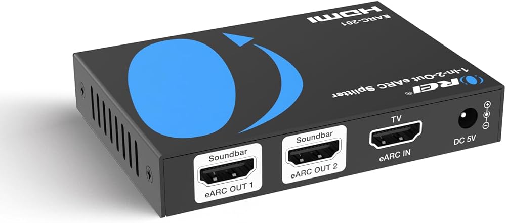 مقسم صوت OREI eARC 1 في 2 - مستخرج وموزع صوت HDMI ARC/eARC، Dolby Atmos، DTS:X، TrueHD، التحكم في مستوى الصوت CEC، محول صوت مكبر الصوت المزدوج