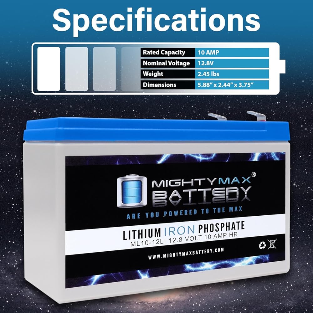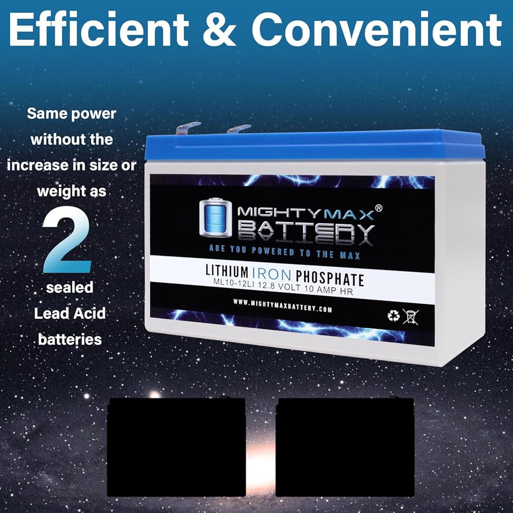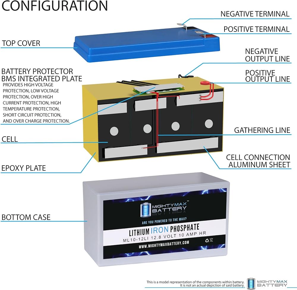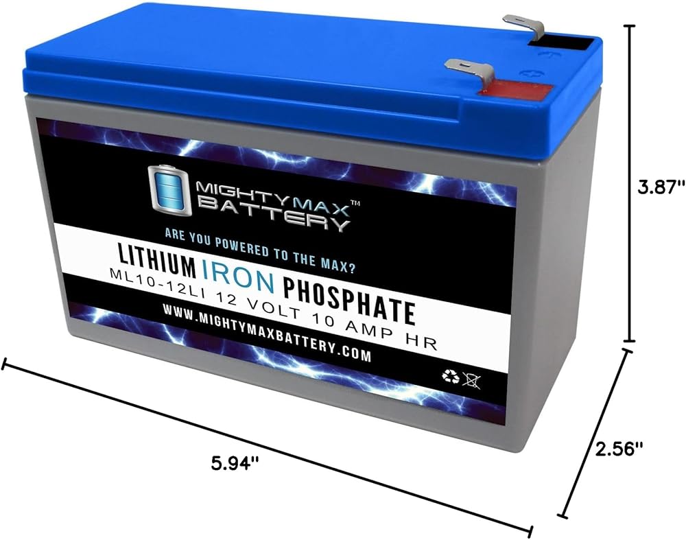 ML10-12LI عبارة عن بطارية ليثيوم فوسفات حديد 12 فولت 10 أمبير محكمة الغلق وقابلة لإعادة الشحن ولا تحتاج إلى صيانة. الانخفاض المباشر في استبدال حمض الرصاص.