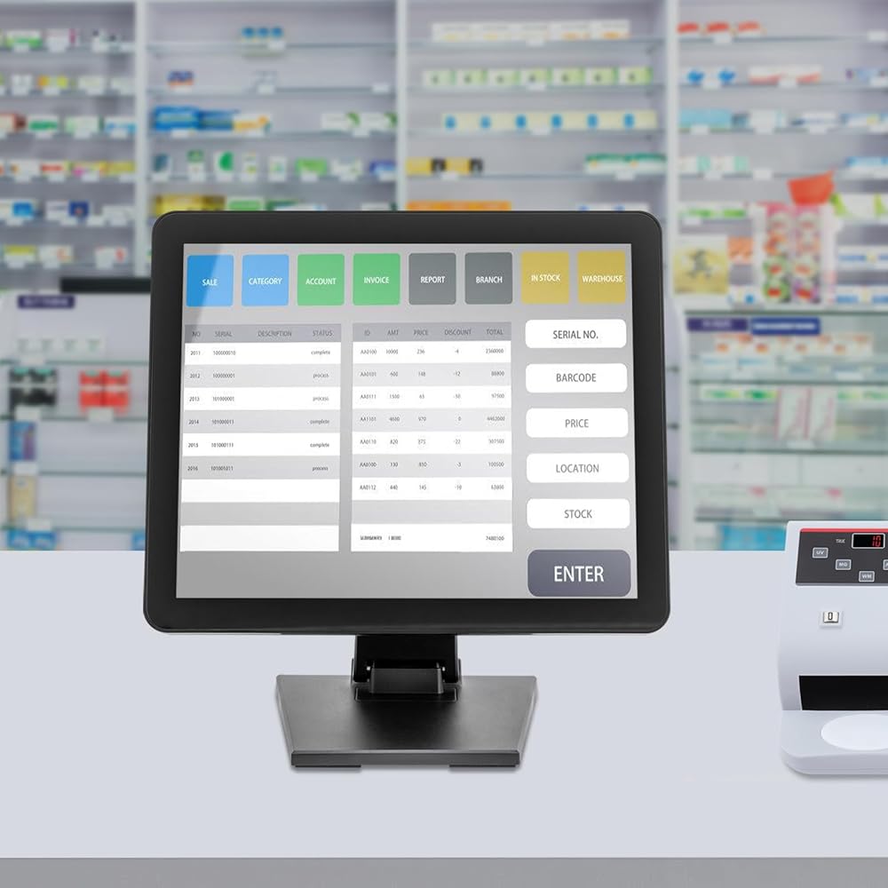• High-definition Display: Cash register monitor 17-inch high-definition screen, resolution 1280 × 1024, brightness 300cd/m2, contrast ratio 500:1, color value 16.2m.
