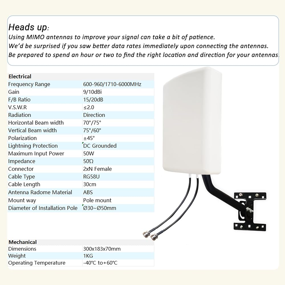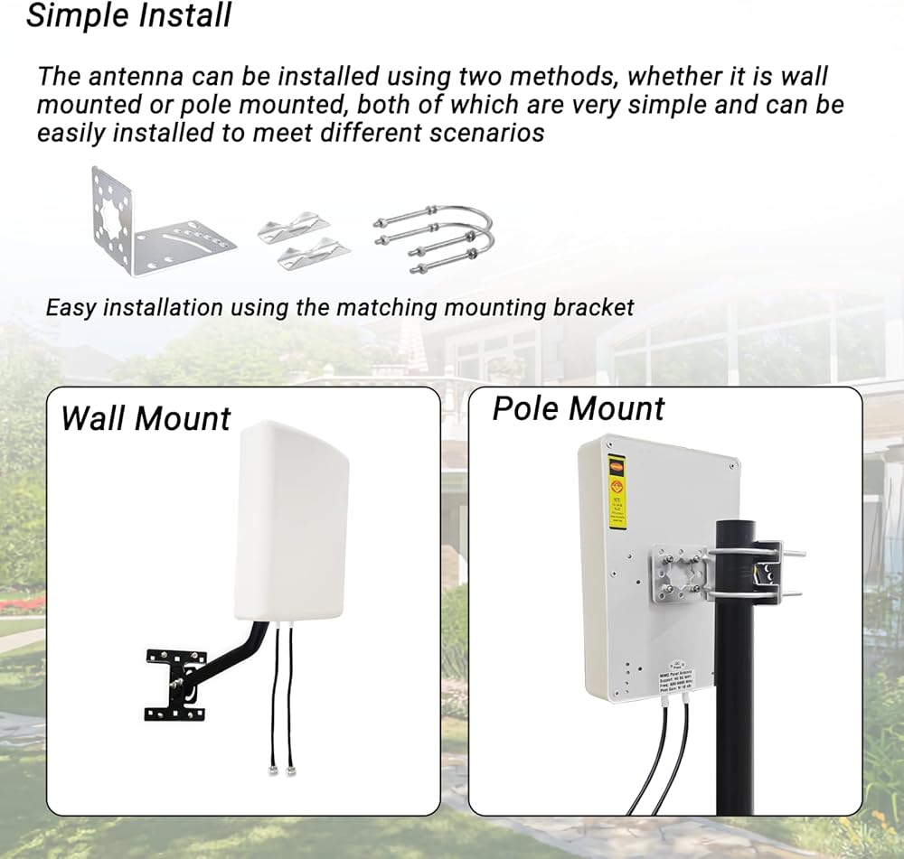 This 5g mimo antenna is suitable for remote locations. EASY TO INSTALL, The package includes instructions that guide you through the assembly and installation process and tips.