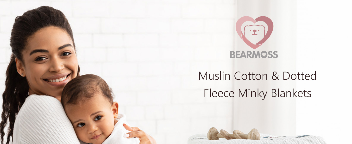 • ناعمة ومسامية: بطانية الأطفال Bearmoss الخاصة بنا مصنوعة من قطن الموسلين بنسبة 100% في الأمام ونسيج صوف منقط فائق النعومة في الخلف. يضمن هذا المزيج أن تكون بطانياتنا لطيفة ومريحة لبشرة طفلك الحساسة. مصممة لتكون مهدئة ولكنها متينة مع تحسين جودة نوم الطفل.