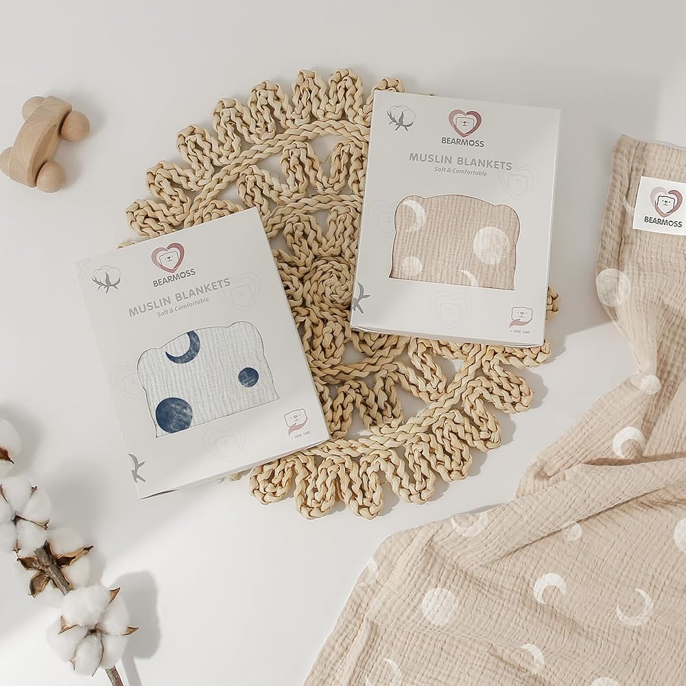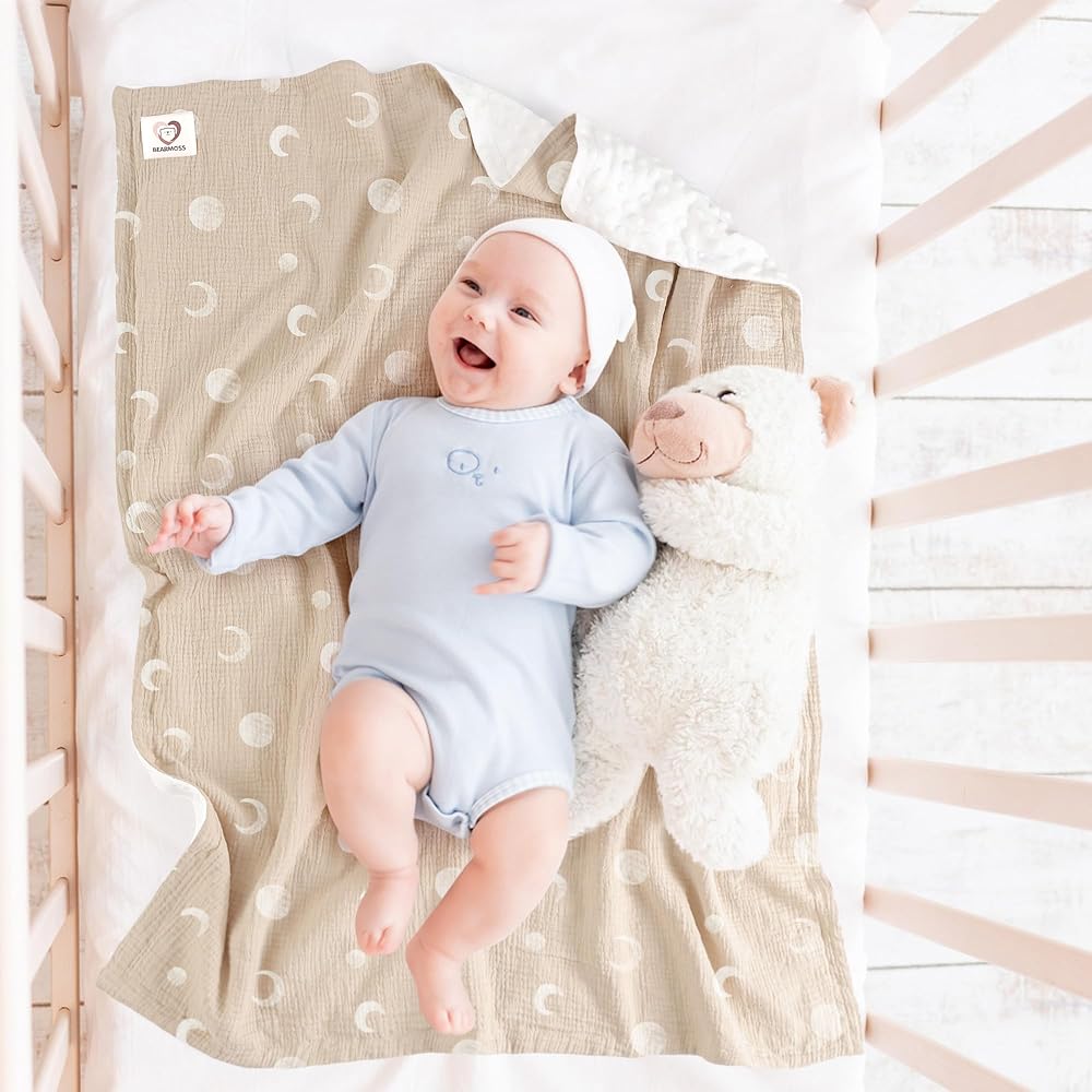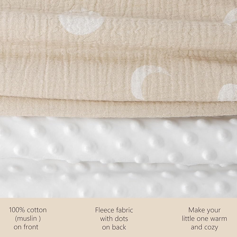 بطانيات Bearmoss للأطفال للجنسين من الأولاد والبنات، بطانيات سرير أطفال ناعمة مع واجهة أمامية من قطن الموسلين وظهر من الصوف المنقط لحديثي الولادة مقاس 30 × 40 بوصة (هلال صحراوي)