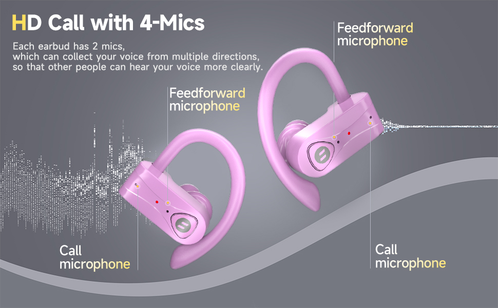 4 ميكروفونات وجودة صوت ستيريو: تتميز كل سماعات أذن لاسلكية بميكروفونات مزدوجة وتقليل الضوضاء المتقدم لإجراء مكالمات واضحة. بفضل مكبر الصوت مقاس 10 مم والغشاء المرن، فإنها توفر صوت استريو متوازنًا وجهيرًا غنيًا