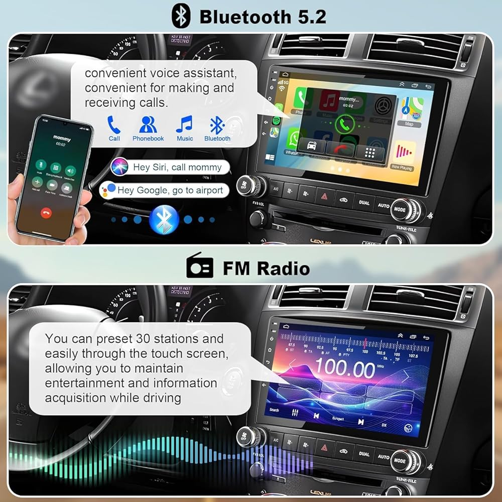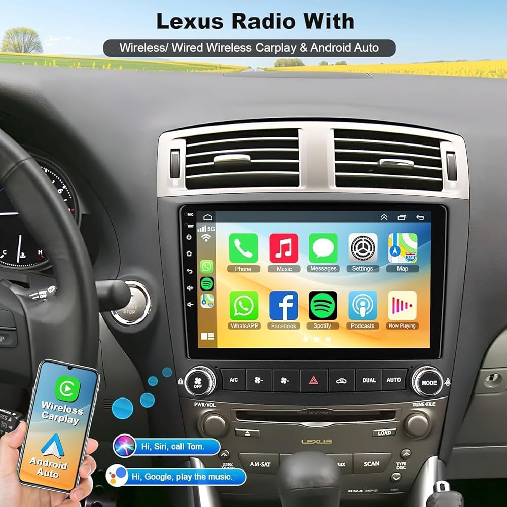 🚗【Carplay سلكي لاسلكي وAndroid Auto】يتوافق مشغل السيارة IS250 IS300 IS350 2006-2010 مع iOS CarPlay وAndroid Auto مما يتيح لك استخدام هاتفك على الشاشة الكبيرة بسلاسة، ويمكنك إجراء المكالمات بدون استخدام اليدين بمساعدة Siri أو Goo-gle، وسهولة الحصول على جهات اتصال الهاتف ورسائل البريد الإلكتروني والإشعارات وملاحة الخرائط والموسيقى والفيديو والمزيد. وهذا يعني أنه يمكنك التركيز أكثر على السلامة على الطرق أثناء القيادة!
