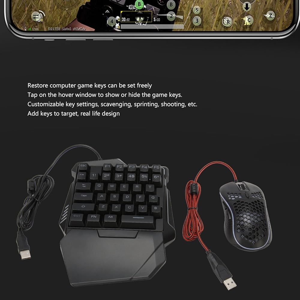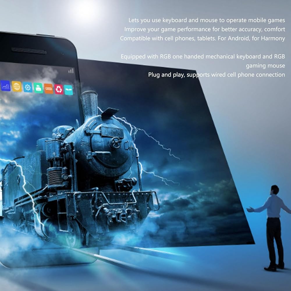 • RGB KEYBOARD AND MOUSE SET: The cell phone to keyboard and mouse converter set comes with a RGB one handed silent gaming keyboard and RGB gaming mouse, a complete set of supporting equipment, use the gaming specific high sensitivity keyboard and mouse, start gaming instantly. The silent gaming keyboard brings a quieter gaming experience without disturbing others.
