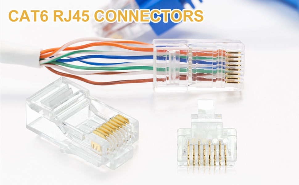 موصلات RJ45 تمر عبر الموصلات، الحجم: 22.4 × 11.68 × 8 مم (الطول × العرض × الارتفاع)، ناقل الحركة: CAT6، كابل الشبكة المطبق: 24-26AWG، مادة الغلاف: PC، ورقة نحاسية، المادة: نحاس مطلي بالذهب، في العبوة: 30 قطعة موصلات Cat6 RJ45