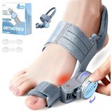 مصحح الورم للنساء والرجال، جبيرة ورم مزدوجة الحركة بمقبض قابل للتعديل مع وسادة من السيليكون - مملس لأصابع القدم وفاصل لتخفيف أروح إبهام القدم، يناسب القدم اليسرى/اليمنى (رمادي)