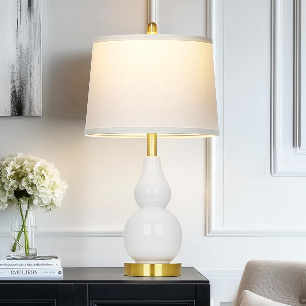 تصميم فريد من نوعه من السيراميك ذو القرع المزدوج: تتميز مصابيح السيراميك البيضاء بتصميم سيراميك مزدوج القرع ساحر وفريد من نوعه يضيف الرقي الحديث إلى غرفة المعيشة وغرفة النوم. إنه يجمع بشكل مثالي بين أنماط المزرعة الريفية والبسيطة، مما يجعل هذا المصباح الخزفي الكلاسيكي لديكور منزلي رائع (ارتفاع المصابيح 25 بوصة بما في ذلك رأس المصباح)
