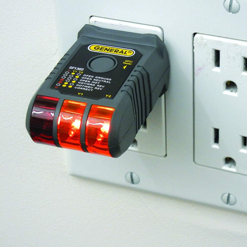حدد المشاكل في مخرج واي فاي GF1302 GFCI يكتشف الأسلاك الخاطئة في منافذ 3 أسلاك بالإضافة إلى التحقق من تشغيل GF1302 GFI الأسلاك الخاطئة يمكن أن تسبب صدمة كهربائية أو حريق منزلي