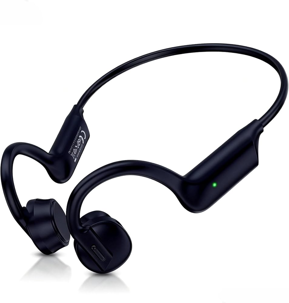 سماعات توصيل العظام سماعات بلوتوث 5.4 لاسلكية، سماعات أذن مفتوحة، سماعة مقاومة للماء IPX6 للجري، سماعات رياضية وقت تشغيل 12 ساعة، ركوب الدراجات، المشي لمسافات طويلة، القيادة، أسود عميق