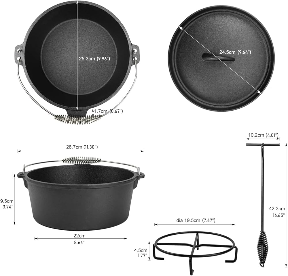 متانة مدى الحياة: الفرن الهولندي مصنوع من الحديد الزهر عالي الجودة، مما يجعله قويًا للغاية وغير قابل للتدمير تقريبًا. مع العناية المناسبة، تم تصميمه ليدوم مدى الحياة، مع التركيز على متانته وقيمته طويلة الأمد