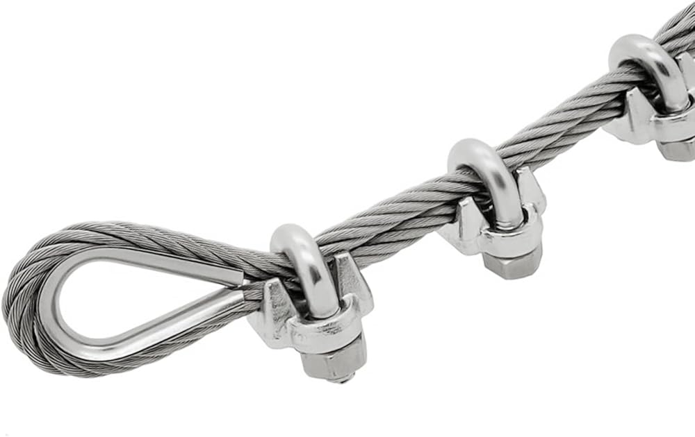مشبك الحبل السلكي مصنوع من الفولاذ المقاوم للصدأ عالي الجودة. هذا الهيكل الصلب قوي ودائم. السطح مصقول بدون نتوءات.