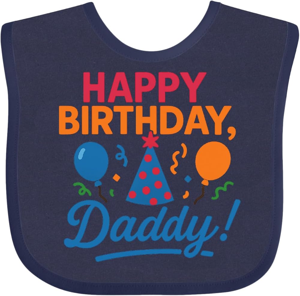 Celebrate in style with the vibrant 'Happy Birthday, Daddy!' design. Featuring colorful balloons and a festive party hat, this Baby Bib is perfect for making Dad feel special on his birthday.