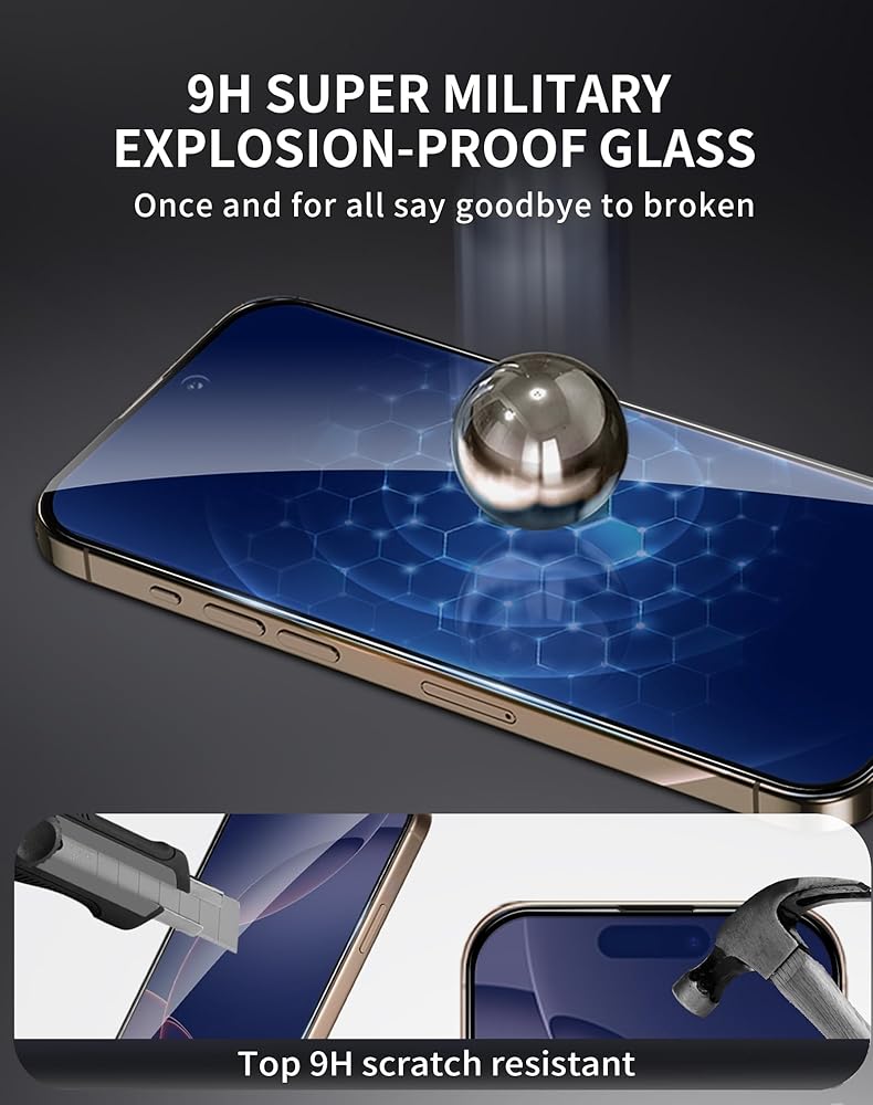 • [متانة فائقة] مصنوع بمرونة من الدرجة العسكرية، يتميز واقي الشاشة الزجاجي المقوى لهاتف iPhone 15 Pro بتصنيف صلابة يتجاوز 9H، مما يوفر مقاومة رائعة للخدوش والتأثيرات. كن مطمئنًا لأن شاشتك محمية تمامًا من التآكل والتلف اليومي.