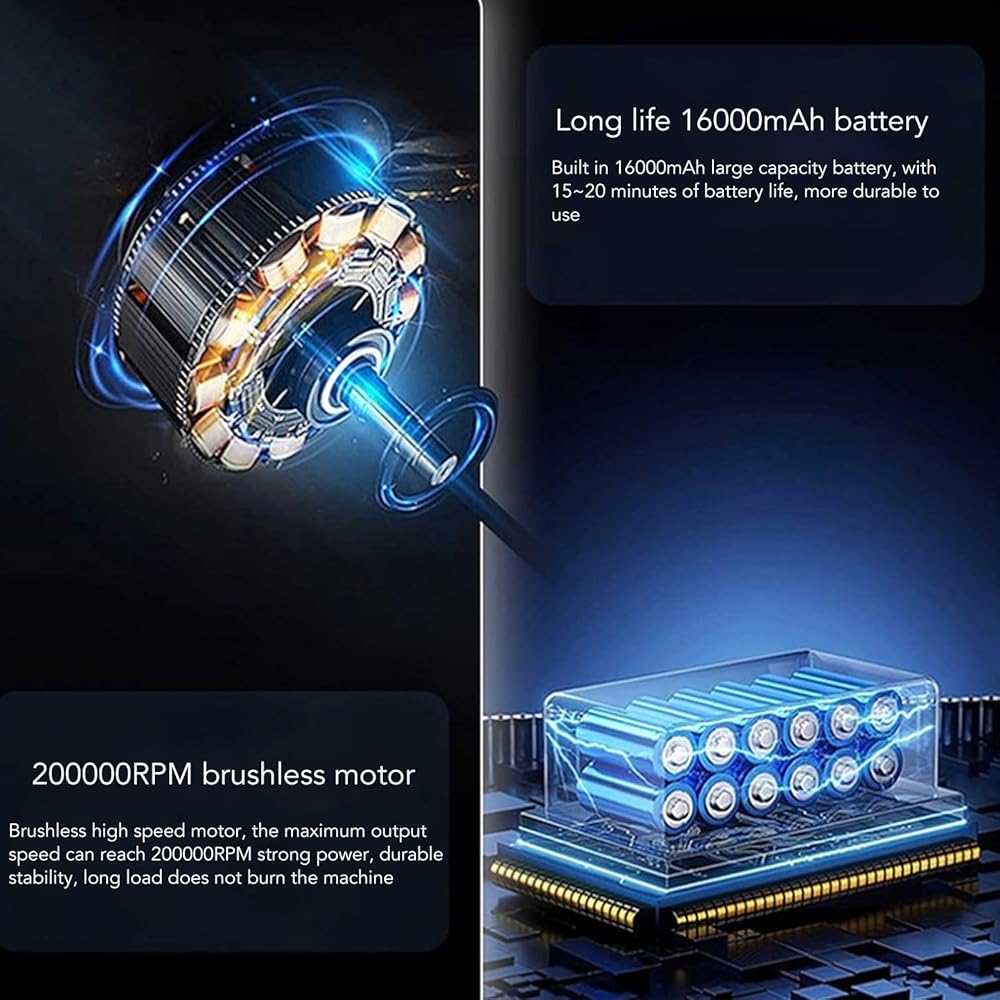 • [Ultra High Speed Performance] The electric air duster boasts an impressive 200000 rpm motor delivering a powerful 52m/s wind speed for rapid drying and efficient cleaning. with multiple adjustable speed settings this versatile tool adapts to any task from delicate electronics to heavy duty surfaces. experience unmatched airflow power that outperforms traditional canned air dusters.