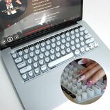 Target Audience: For users with long nails, including naturally grown or grafted nails Material: Durable silicone Durable silicone Colors: White Compatibility : Perfectly compatible with MacBook Pro 13“” 2020-2023 Partially compatible with MacBook Air 15” 2023 - 2024 MacBook Air 13” 2018 - 2024 MacBook Pro 14” 2021 - 2024 MacBook Pro 16” 2021 - 2024 MacBook Pro 13“+15” 2016 - 2020 (ESC key or left/right arrows not fully covered, but still functional) Key Features Nail protection: Helps prevent nail damage caused by typing with long nails and reduces the impact on your nails Avoids embarrassment: Avoids the noise embarrassment of typing in libraries and cafes due to long nails. Comfortable typing: Fingers type in a more natural position, avoiding discomfort and finger fatigue. Improves accuracy and speed: Reduces typing errors caused by incorrect finger positions, increasing typing efficiency and speed. Universal fit: Designed for medium to long nails and compatible with most standard keyboard sizes Durable and easy to use: Easy to install and securely fastened for a smooth and hassle-free typing experience