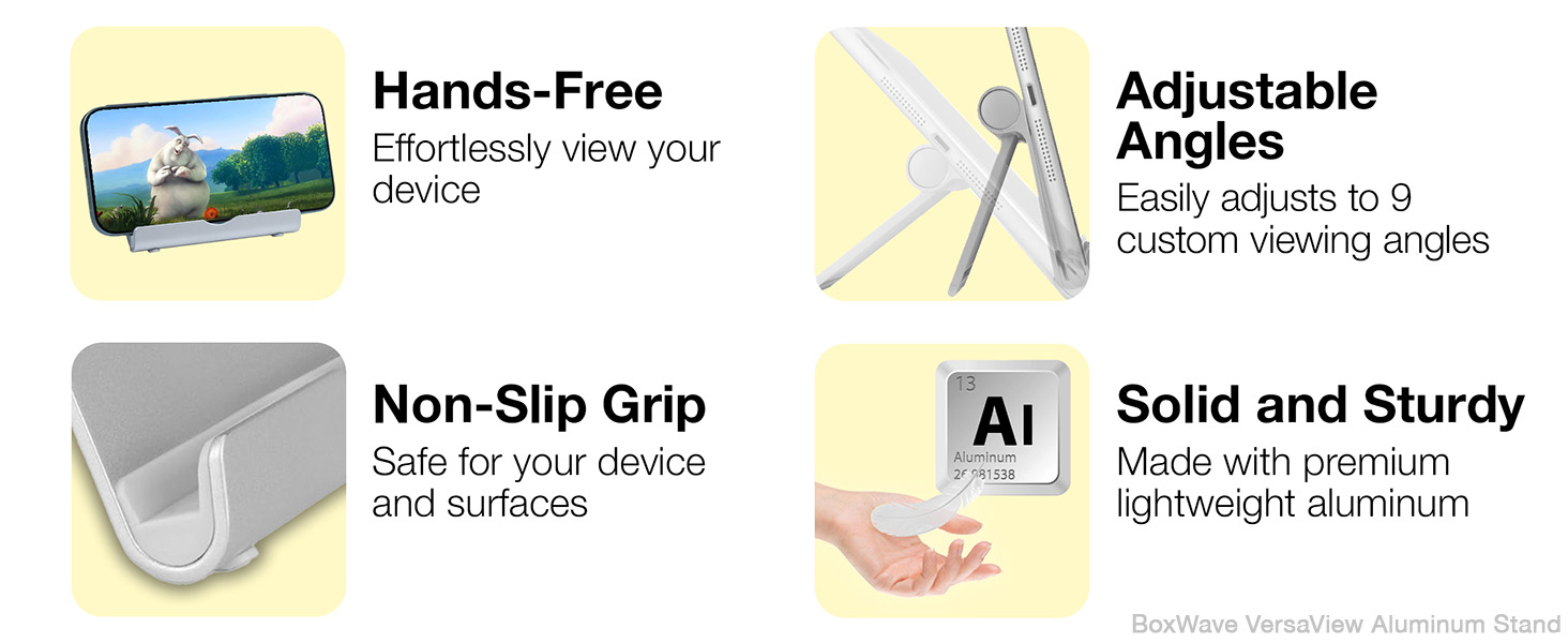 💪 [قوي وخفيف الوزن] مصنوع من الألومنيوم المتين، هذا الحامل يحمل جهازك بشكل آمن دون التذبذب أو الانقلاب.
