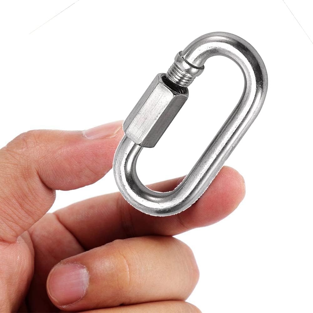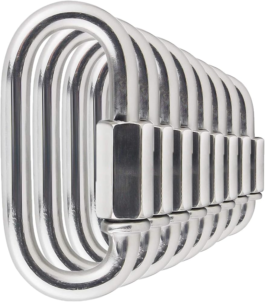 قفل حلقي شديد التحمل: وصلة سريعة الشكل بيضاوية مقاس 5/16 انش تتميز بهيكل فولاذي عالي القوة مع نتوءات حرة يمكنها تحمل 1200 باوند من الوزن؛ ولكن من أجل السلامة، لا تتجاوز الحد الأقصى للحمل