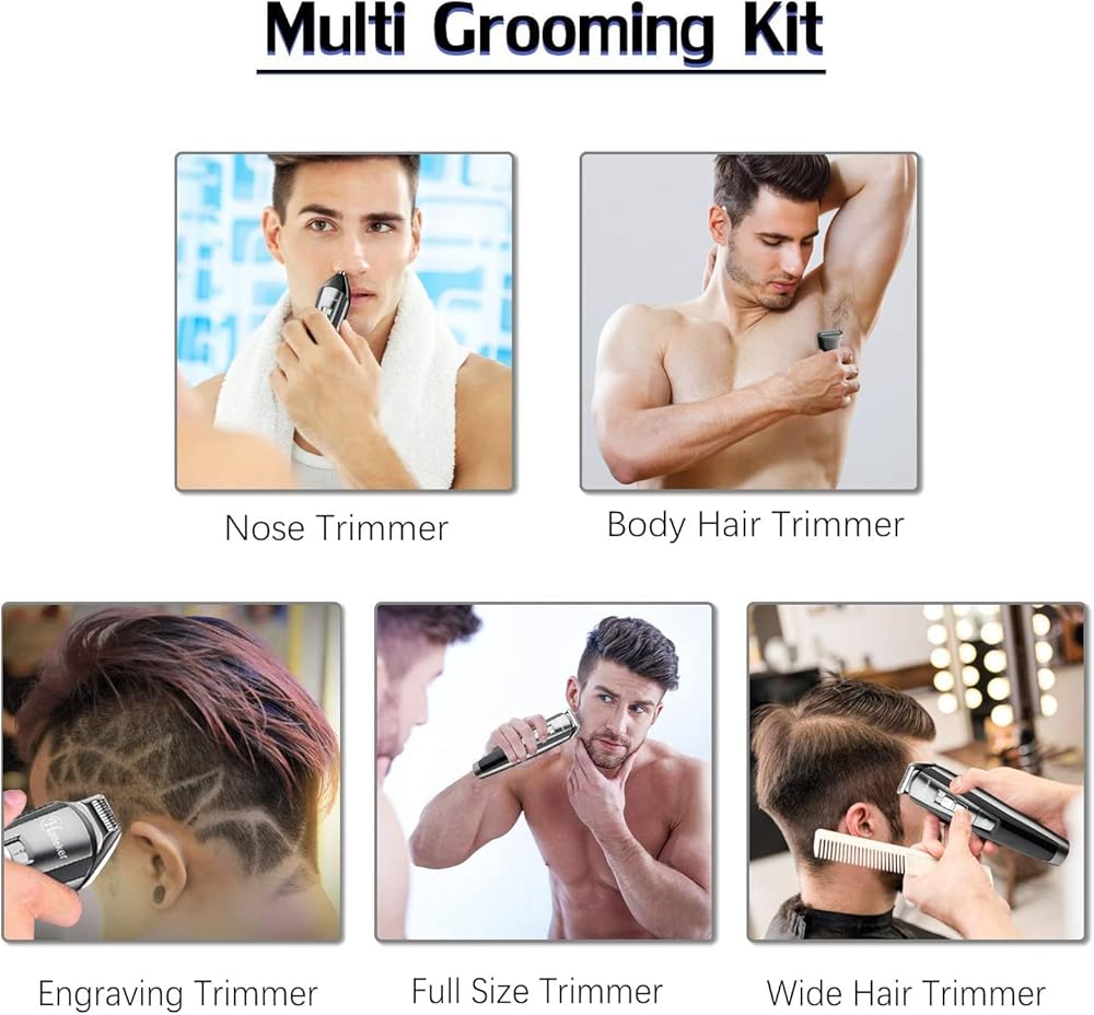 مجموعة ماكينة حلاقة الشعر واللحية للرجال، ماكينة تشذيب الشعر والشارب بدون سلك، مجموعة ماكينة حلاقة دقيقة مقاومة للماء وقابلة لإعادة الشحن عبر منفذ USB 5 في 1