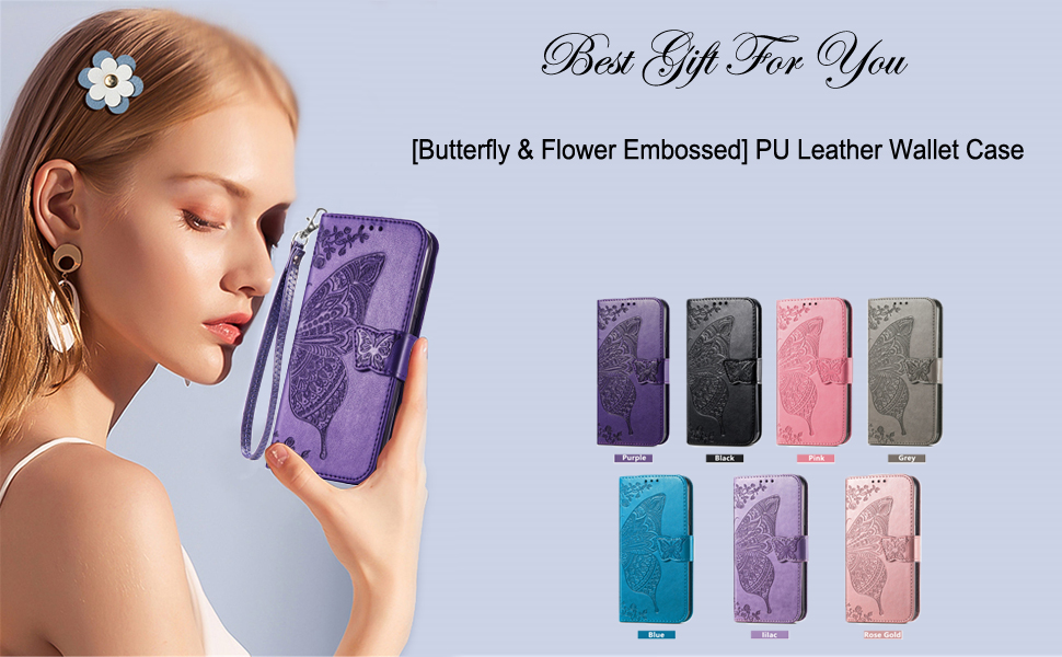 حافظة محفظة HAOTP T-Mobile Revvl 7 5G، حافظة جلدية فاخرة منقوشة على شكل فراشة مصممة لهاتف T-Mobile Revvl 7 5G [غير مناسبة Revvl 7 PRO 5G].
