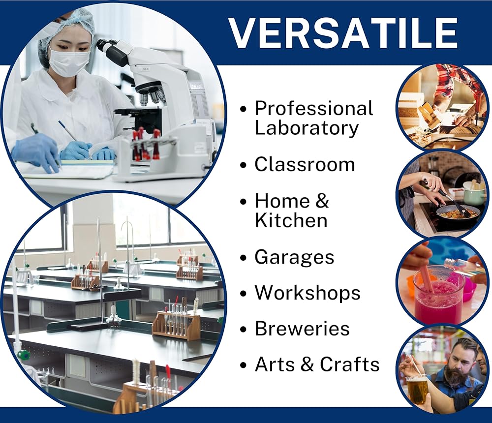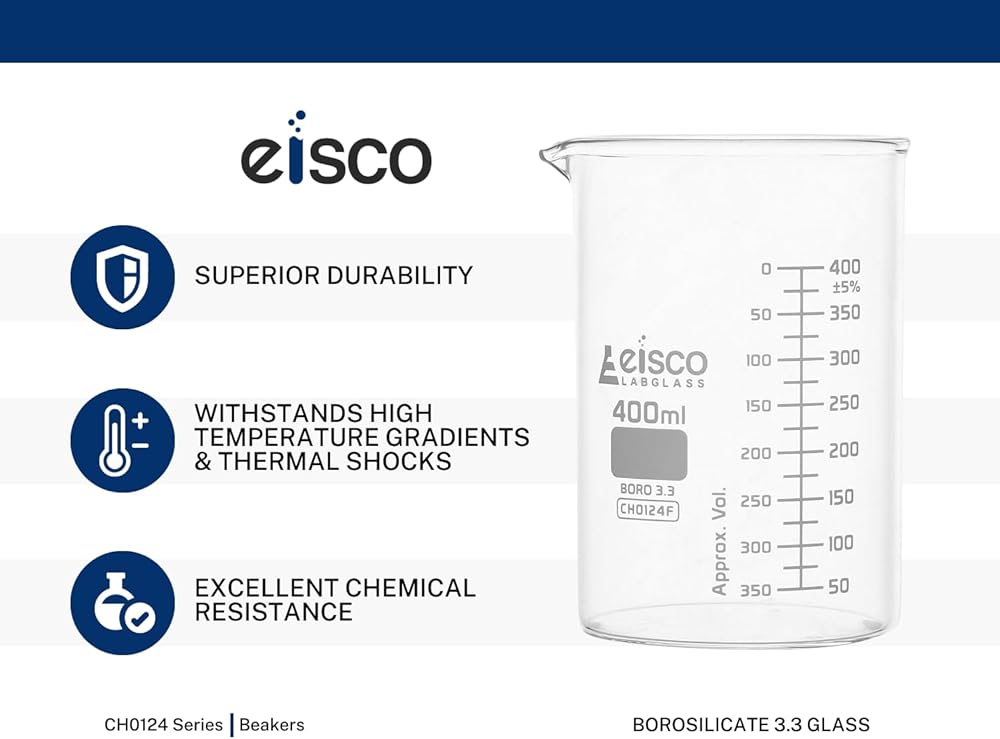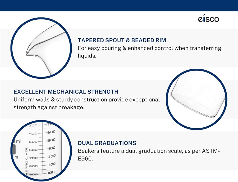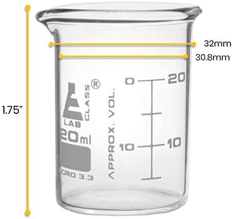 قوة صناعية - مصنوع من زجاج البوروسيليكات 3.3 عالي الجودة وشديد التحمل والذي يتميز بقوة ممتازة ضد الكسر وهو مصمم للاستخدام في المختبرات الاحترافية، ولكنه مثالي للفصول الدراسية والمرآب والاستخدام المنزلي