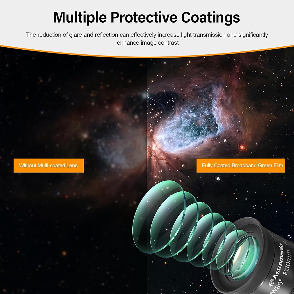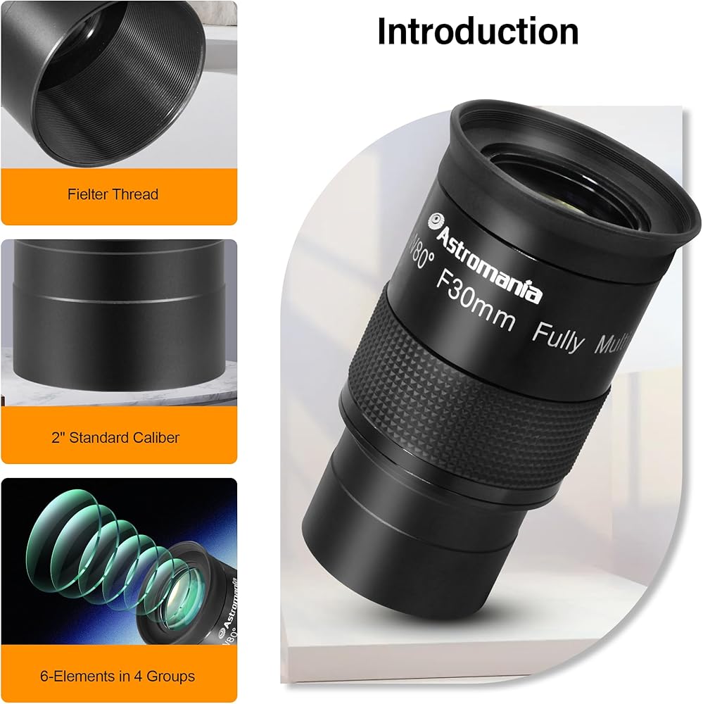 عدسة Astromania مقاس 2 بوصة فائقة الاتساع بزاوية 80 درجة F30mm - حزمة مع - مرشح Moon/Skyglow مقاس 2 بوصة