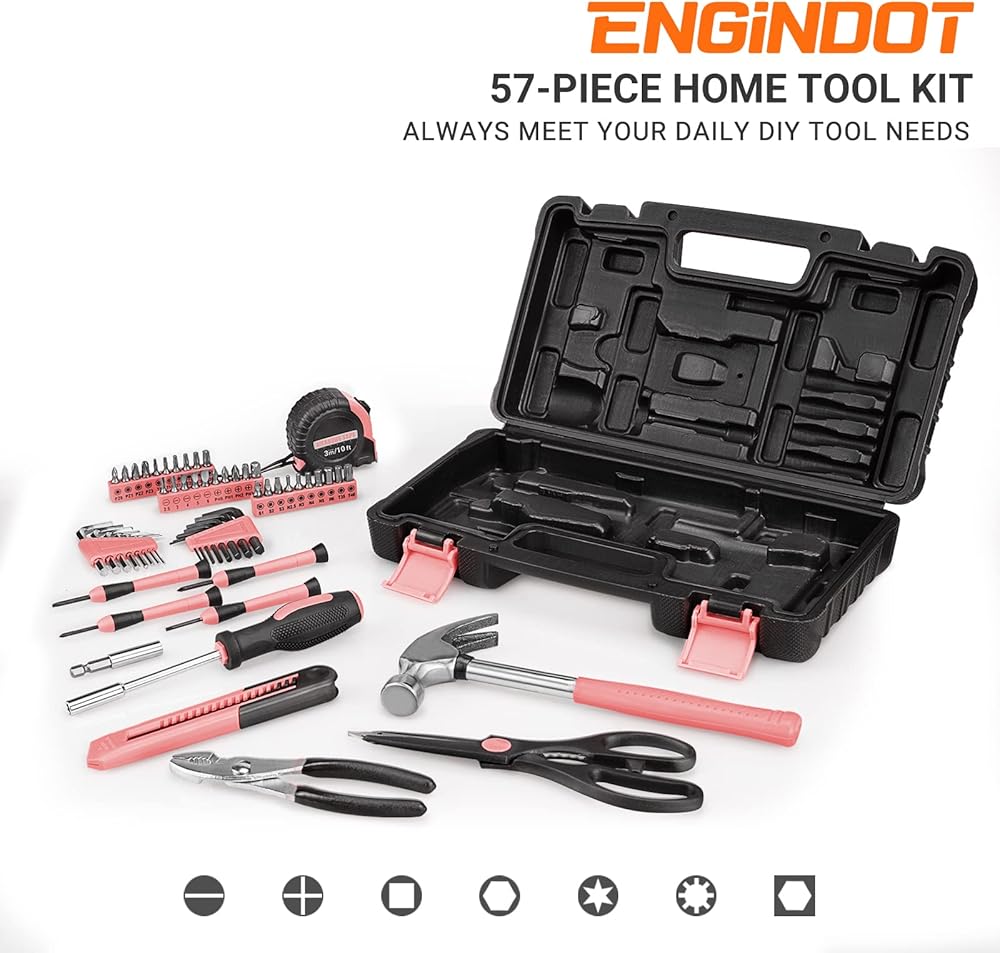 خيار هدية مثالي - بفضل الجودة العالية وسهولة الحمل، تعد مجموعة الأدوات المنزلية ENGiNDOT المكونة من 57 قطعة خيارًا مثاليًا كهدية لأصدقائك وعائلتك.