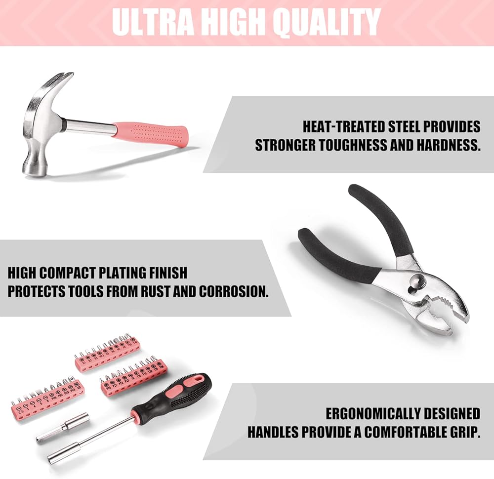 جودة فائقة - مصنوعة من الفولاذ المعالج بالحرارة عالي القوة. طلاء نهائي يحمي الأدوات من الصدأ والتآكل. مقبض مريح يوفر قبضة مريحة. تحافظ حقيبة الأدوات القوية على جميع أدواتك أنيقة ومنظمة.