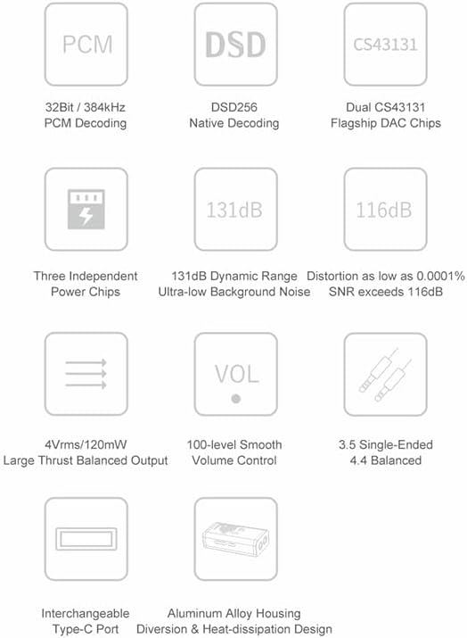 • 【Dual Cirrus Logic flagship decoding chips, Three independent power chips】 DAWN PRO adopts dual flagship decoding amp chips CS43131 from Cirrus Logic, and uses HiFi-class USB digital interface chip, dual independent crystal oscillators, and three independent power supply chips for supplying each IC separately, forming a set of high-efficiency and high-performance HiFi audio circuit architecture, which meets enough thrust, ultra-low distortion, ultra-low noise and rich details in audio experience