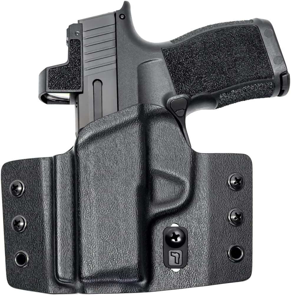 Compatible with the Sig Sauer P365, P365X, and SAS pistol. Each holster is formed and fit to the firearm, securely retained with minimal drag. These outside-the-waistband holsters are specifically designed for concealed carry, providing the best everyday carry option.