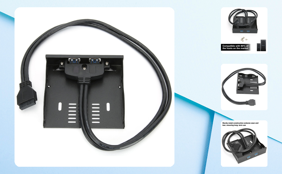 2 واجهات USB3.0 لوحة أمامية مرنة مع 19 دبوس إلى 2 واجهة USB3.0 HUB لنقل البيانات بسرعة عالية، شحن سريع للكمبيوتر مع محرك مرن 3.5 بوصة