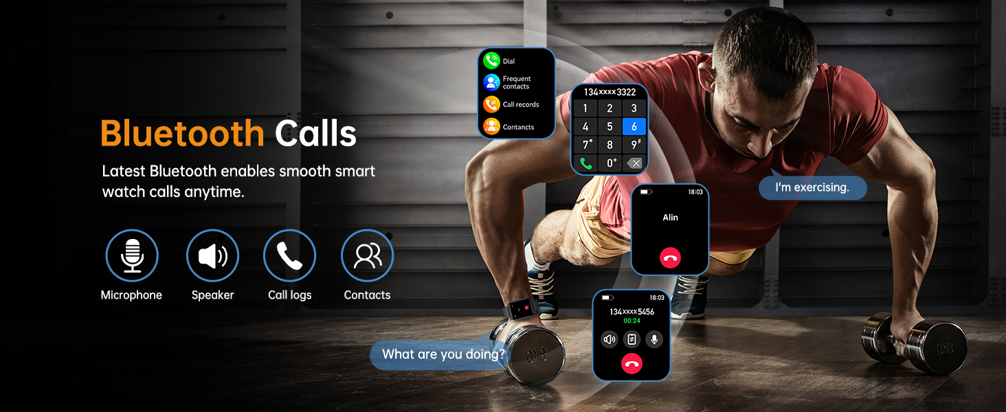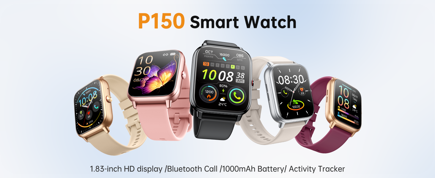 شاشة لمس عالية الدقة مقاس 1.83 بوصة وأقراص قابلة للتخصيص: تتميز بشاشة تعمل باللمس TFT HD مقاس 1.83 بوصة لتشغيل سلس، مع ضبط السطوع التلقائي لسهولة المشاهدة في الإضاءة المختلفة. توفر أكثر من 200 وجه ساعة مثبت مسبقًا، ويمكنك أيضًا إنشاء أقراص فريدة لعرض أسلوبك الشخصي. مجهزة بحزام سيليكون ناعم لارتداء مريح طوال اليوم، مما يجعل الساعة عملية وعصرية.